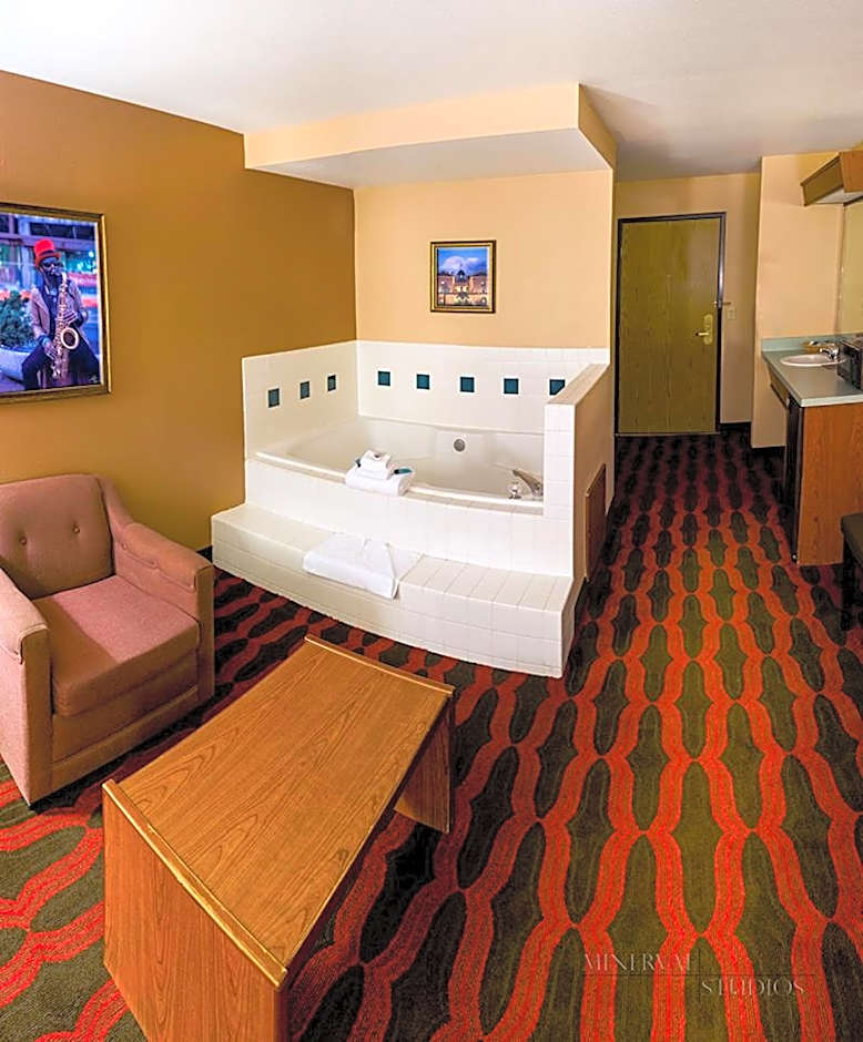 The hot tub is a top feature of this double room. This double room has air conditioning, a coffee machine and a TV with cable channels. The unit has 1 bed.